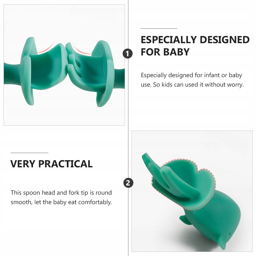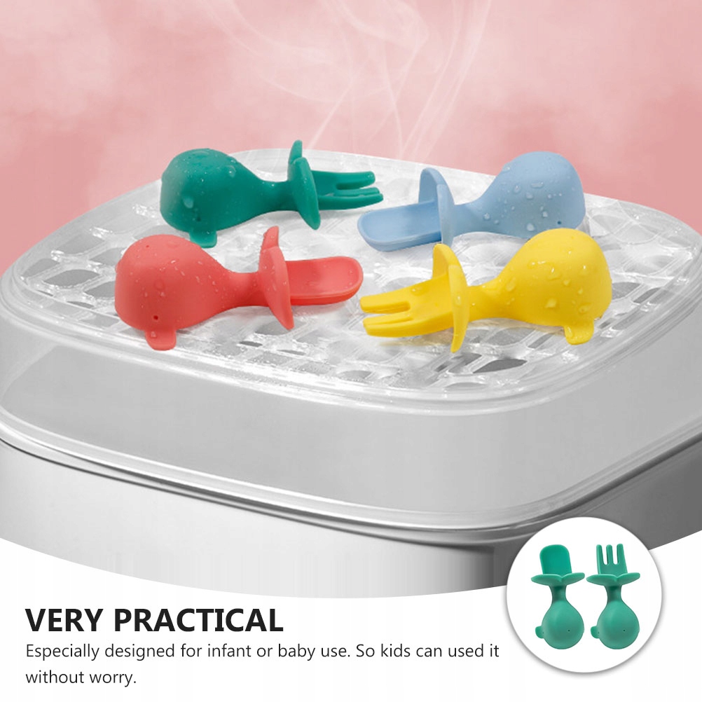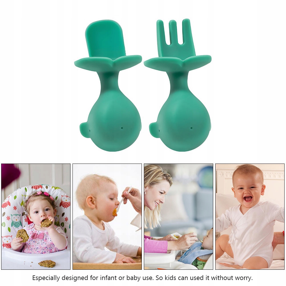 Насадка ложки и кончик вилки круглые, гладкие, что позволяет ребенку есть с комфортом.