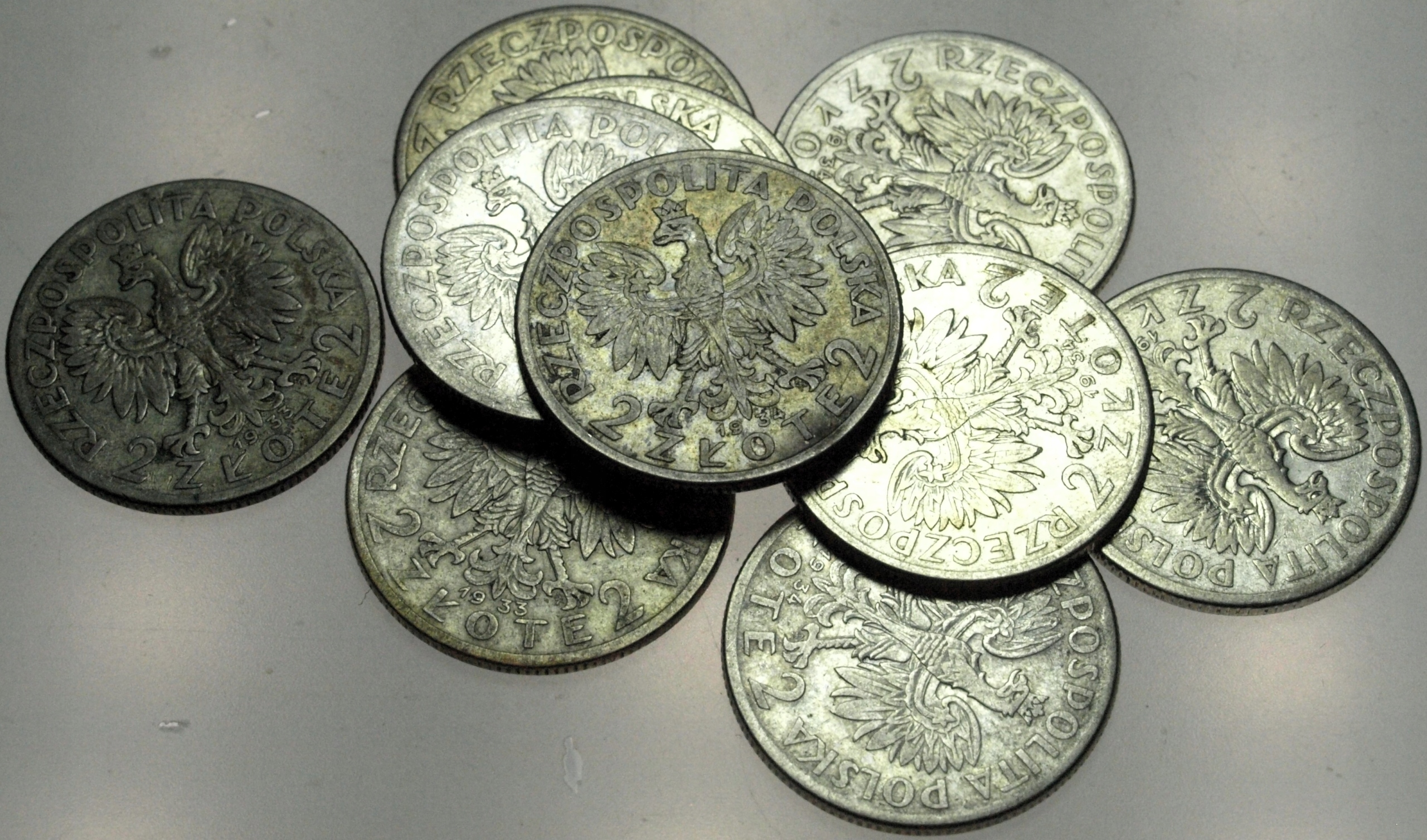 Набор лотов 10x 2 злотых Женская голова Polonia, СЕРЕБРО. Оригинал. ПРОВЕРЬТЕ ДРУГИЕ АУКЦИОНЫ — СОБИРАЙТЕ РЕДКИЕ ЦЕНЫ С NUMISMATO!