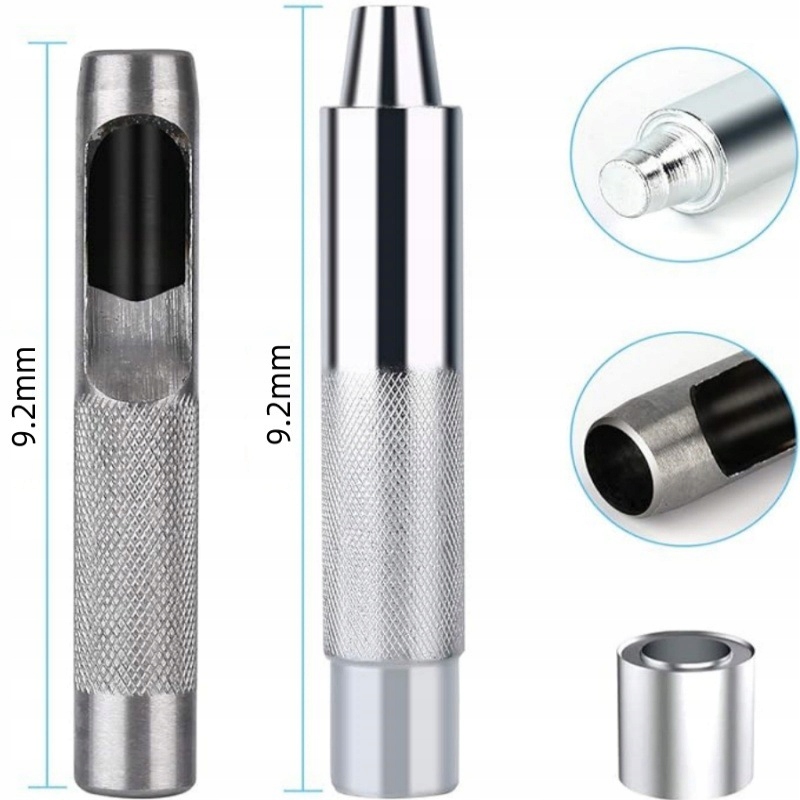 - Надежность и простота в использовании. Изготовленные из прочного металла, дырорез и оправка могут прослужить долго. время; Каждый комплект металлических петель и шайб хорошо сочетается друг с другом, не сломается и не потеряется.