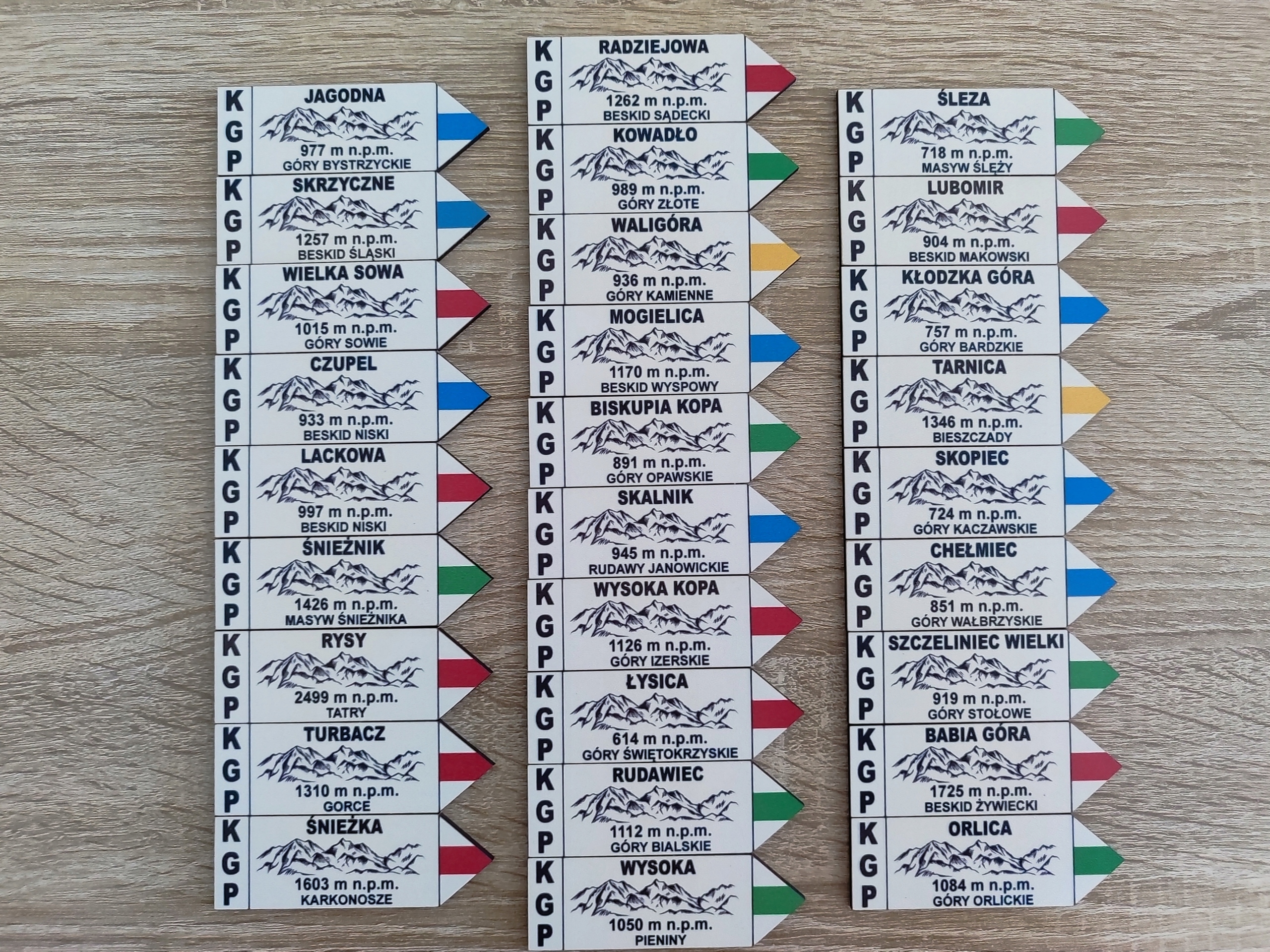 Я предлагаю набор из 28 магнитов значков горных марок, показывающих все вершины из списка короны Польши. Он содержит: