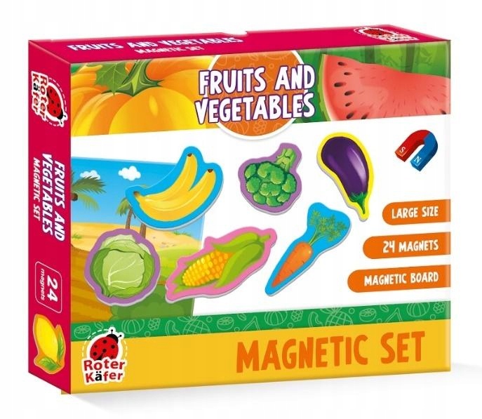 Набор магнитов познакомит ребенка с различными фруктами и овощами. Выучите их имена, узнайте, что они едят и как разговаривают, запомните их свойства.