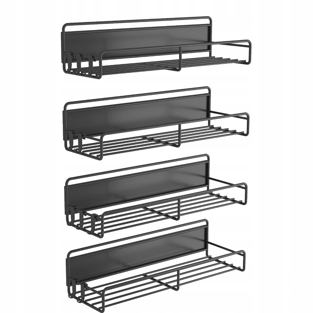 Высокое качество и долговечность. Магнитная полка для специй из 4 упаковок с 10 крючками изготовлена из высококачественной стали и оснащена сверхсильными магнитами на задней стороне. . Черный магнитный органайзер для специй на холодильник поможет хорошо организовать вашу кухню и прослужит долгое время.