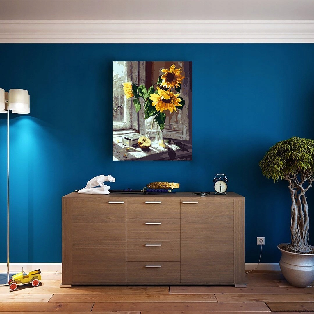 Картину по номерам «Подсолнухи на подоконнике» можно приобрести для себя или в качестве подарка. подарок подростку или взрослому, независимо от возраста. Работа над раскраской обязательно подарит вам массу приятных минут, а уже выполненная работа станет прекрасным и впечатляющим подарком, которым вы сможете украсить свою квартиру или офис. .