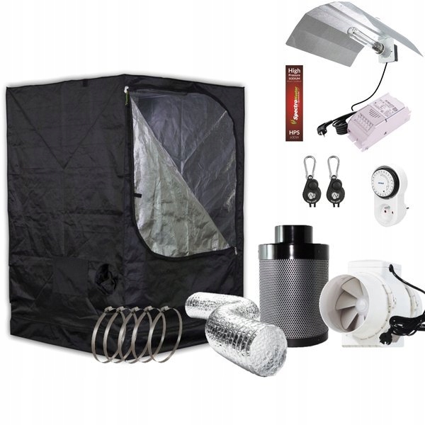 Размеры: 60x60x140см. Объем: 0,50м3. Материал: майлар 600D. Отражательная способность: 95%. Освещение: рефлектор Spectromaster 50х50см. блок питания 250 Вт Лампа Spectromaster HPS 250 Вт. Вентиляция: ТТ фи100мм 187м³/ч. Фильтр фи100мм, 260м³/ч. + необходимые аксессуары.