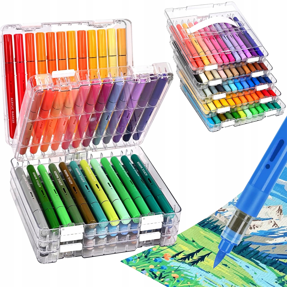 60 насыщенных цветов в прозрачной акриловой упаковке с 5 уровнями, которые можно наслаивать. Легко настраивается до 12/24/36/48/60 цветов — идеальный подарок на день рождения, праздники или творческие мероприятия. Идеально подходит для студентов, любителей и профессиональных художников.
