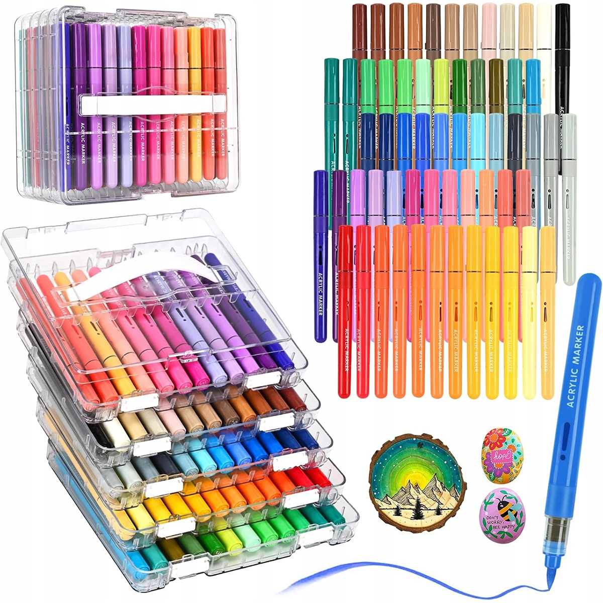 Наши 60 богато пигментированных акриловых маркеров подойдут для камня, керамики, холста, бумаги, дерева, стекла, ткани, металла, пластика и даже тыквы. Идеально подходит для сезонных поделок (Хэллоуин, Рождество, Пасха), украшений своими руками, школьных проектов или профессиональных заданий — везде, где приходит вдохновение.
