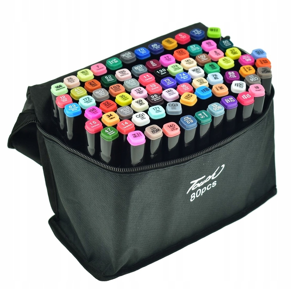 Набор из 80 маркеров насыщенных различных цветов.Незаменимое оборудование как для начинающих, так и для профессиональных рисовальщиков. Отличная пигментация спиртовых чернил, содержащихся в ручках, гарантирует, что рисунки, выполненные ими, будут насыщенными, четкими и не выцветут в течение длительного времени.