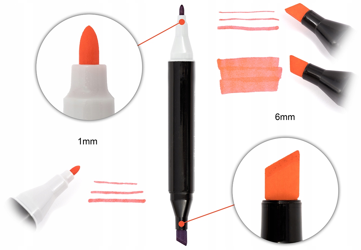 Маркеры изготовлены из высококачественных чернил на спиртовой основе, не содержат кислот и нетоксичны, чернила хорошо растекаются, долговечны, маркеры быстро сохнут, обеспечение насыщенности цвета, удобство нанесения и смешивания различных цветов.