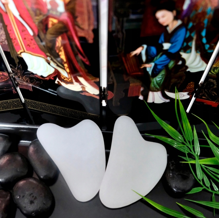 БЕЛЫЙ РОЛИКОВЫЙ МАССАЖЕР ДЛЯ ЛИЦА + КАМЕНЬ ГУА ША