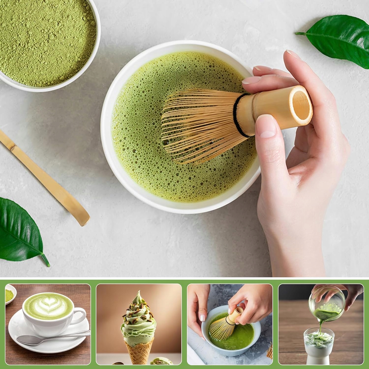 🍃 100% Натуральный: Венчик и ложка для матча, сделанного из естественного бамбука высочайшего качества, без лаков и других химических веществ. Чаша для матча и венчика безопасна для еды, они не содержат свинца или кадмия.
