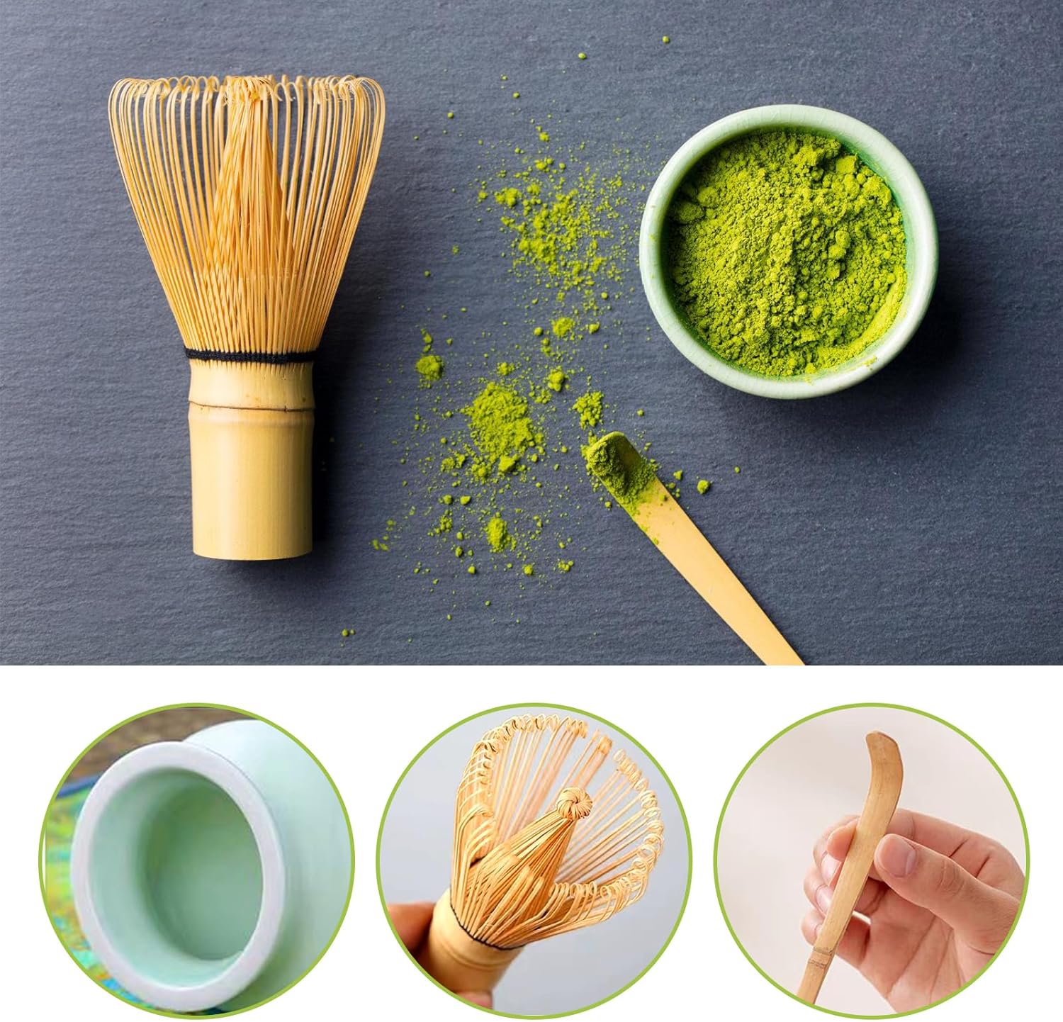 🎁 Подарочная идея: Этот набор для чайного пивоварения Matcha упакован в декоративную коробку и содержит все необходимые аксессуары для бесплатной церемонии чая: Matcha, соответствующая керамическая подставка для венчика и традиционная чайная ложка для оптимального порошка дозирования.