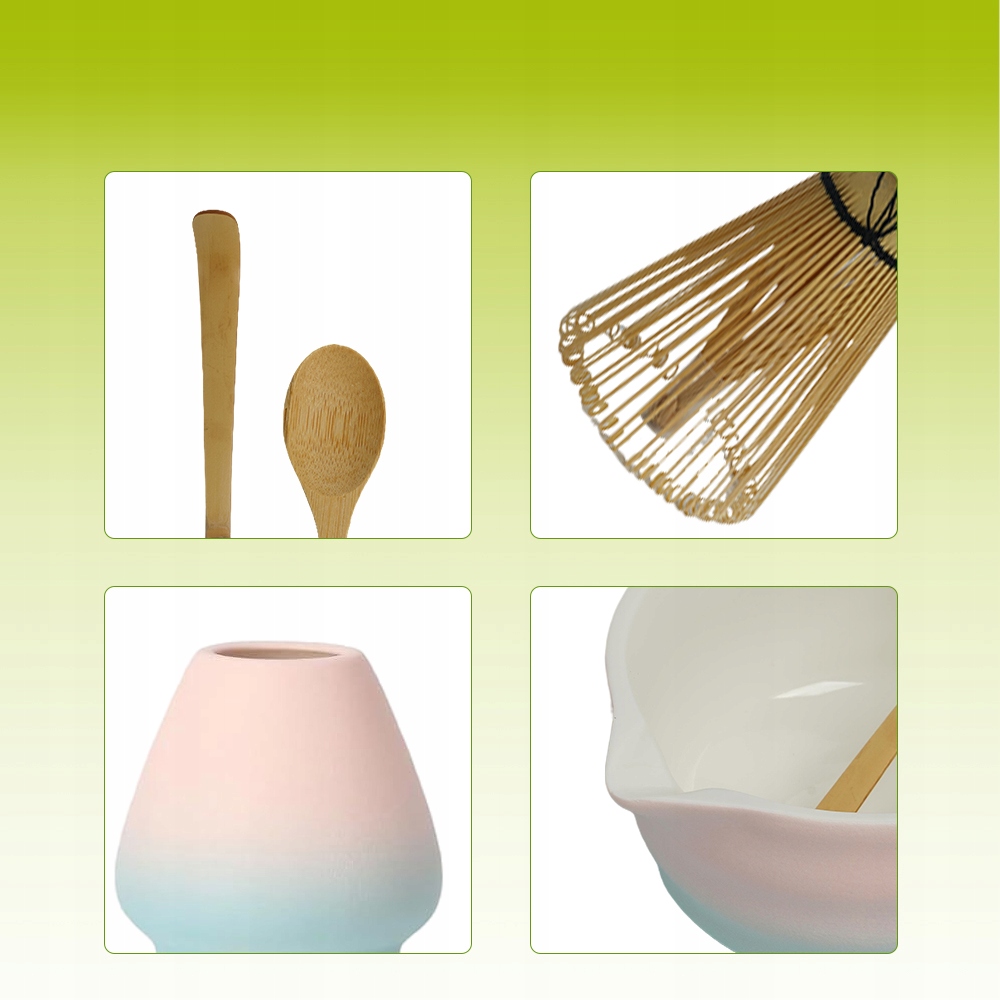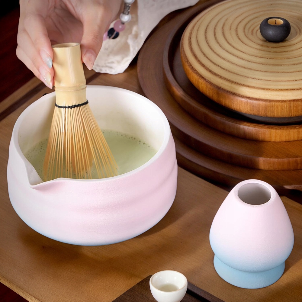 💝💖 Набор из 8 предметов матча — керамическая миска, бамбуковый венчик, сито, ложки, подставки — розовый градиент 🍵🌸💗