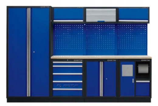 King Tony Workshop набор с размерами 2955 мм (длина) x 460 мм (основной) x 2000 мм (высота). Набор включает в себя 7 металлических шкафов, в том числе: