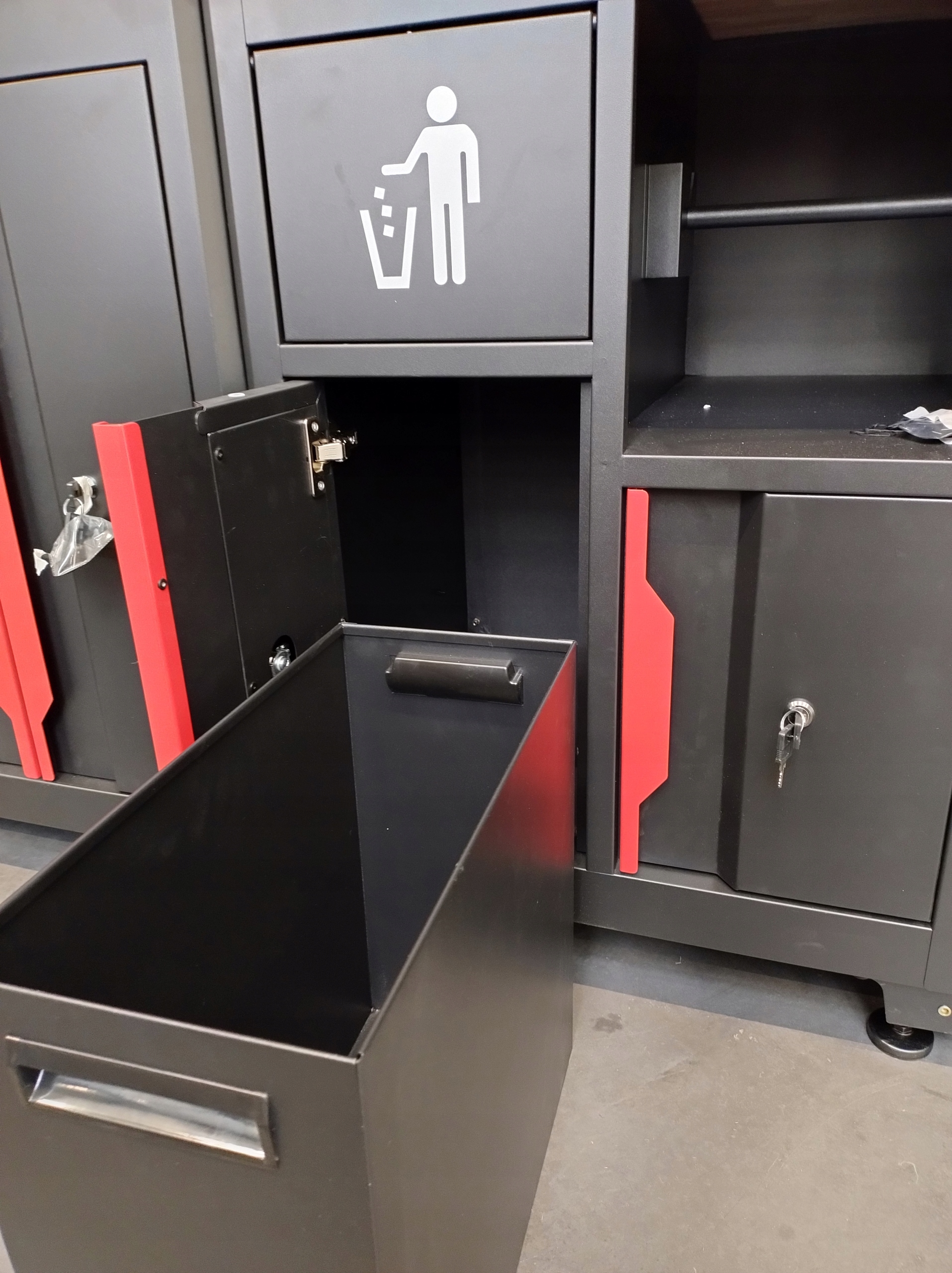 - Встроенный контейнер для мусора и дозатор бумажных полотенец.