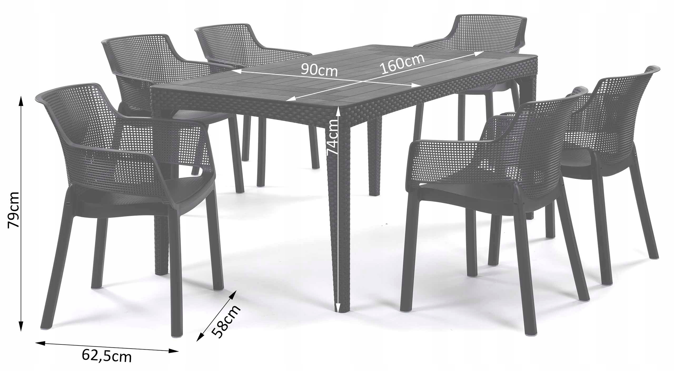 Набор Elisa/Girona 6+1 представляет собой прочную конструкцию из высококачественного полипропилена. Спинка и сиденье стульев имитируют металлическую сетку, столешницу и деревянные доски! Дополнением является имитация ротанга на ножках стола.