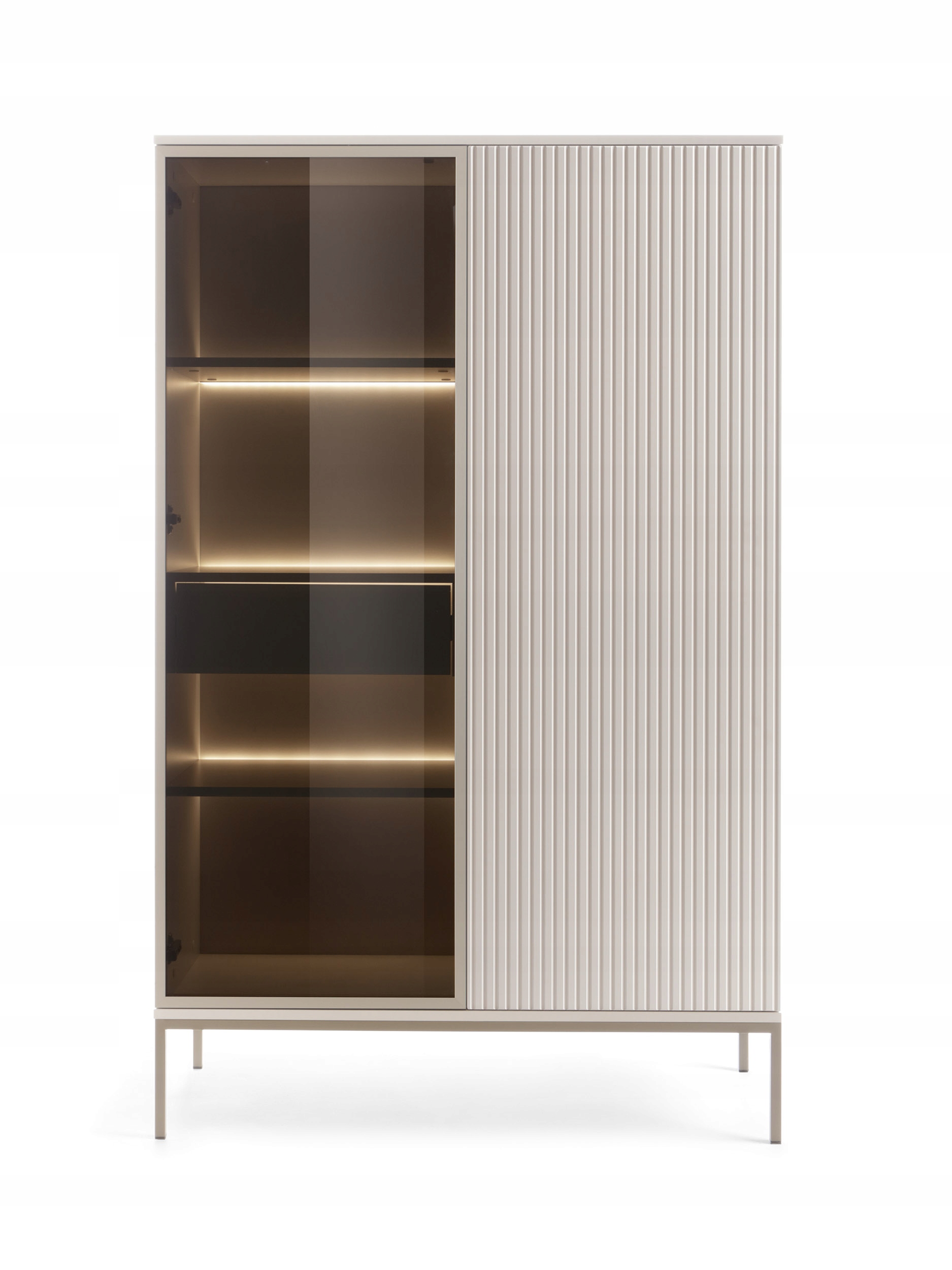 ✔ Вдумчивый дизайн - оснащен вставкой из закаленного стекла и тонким светодиодным освещением, что эффективно подчеркивает характер мебели и создает капризную атмосферу в гостиной. Ноги - элегантный, визуально легкий и чрезвычайно стабильный. Их шампанское финиш добавляет эксклюзивность к мебели и идеально подходит для всей коллекции Sora.
