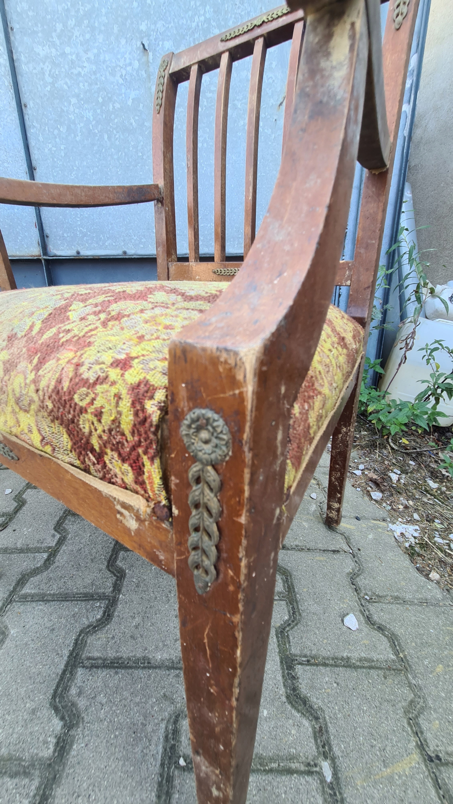 Я предлагаю набор салонной мебели в стиле герцогства Варшав, имея в виду наполеоновскую эру и неоклассицизм. Этот стиль характеризуется простой формой и балансом элегантности и ухода за подробностями, о чем свидетельствует оригинальные коричневые, видимые на картинках.