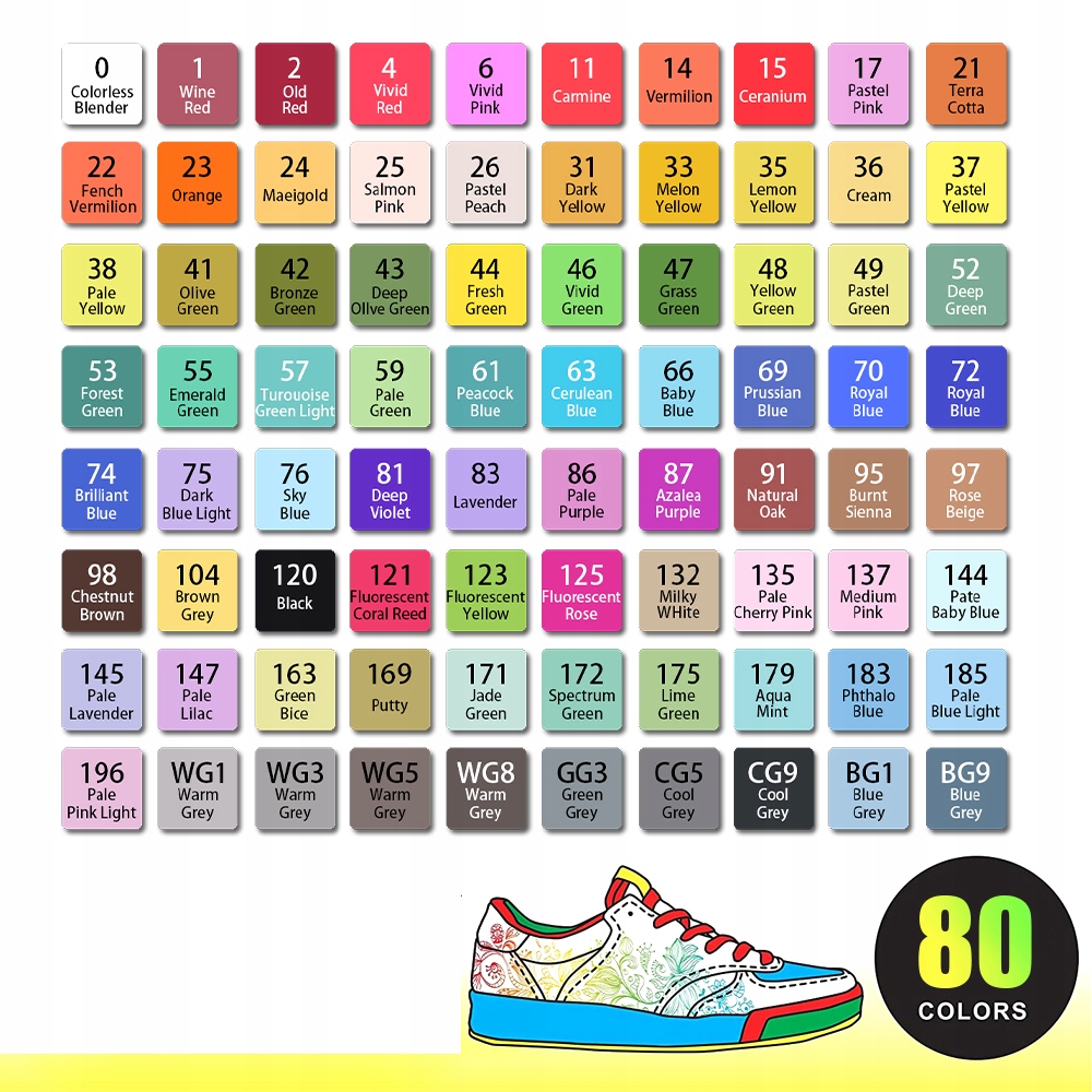 🌈 80 насыщенных цветов - богатая палитра цветов позволяет создавать яркие и выразительные работы.