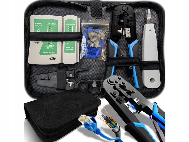 Полный набор - набор включает в себя тестировщик кабеля, зажим, нажмите, заглушка, пробки. В целом позволяет удалить все неисправности и представляет собой необходимость в любом сетевом установщике.