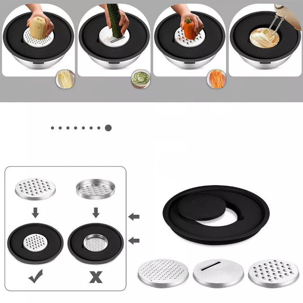 В комплект входит - набор салатниц из 5 предметов с крышками (4 кварты/4,5 л). л, 2,5 кварты/2,7 л, 1,5 кварты/1,6 л, 1 кварты/1,1 л, 0,67 кварты/0,7 л), в комплекте 3 ломтерезки/ножницы.