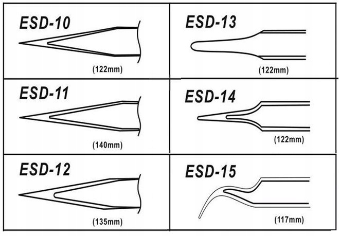 Профессиональный набор пинцетов для сервисных и модельных приложений. В набор входят 9 прямых и диагональных пинцетов, необходимых каждому электронщику. Инструменты полезны для мелкого прецизионного ремонта (например, для извлечения систем). Изготовлен из антистатического материала (ESD), предотвращающего электростатические разряды.