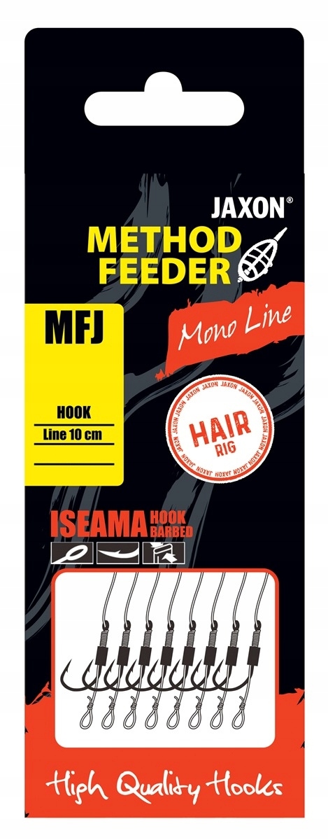 JAXON Method Feeder MFJ Rig с крючком №8 на леске 0,22 мм – готовый к использованию элемент фидерного набора, предназначенный для эффективной ловли на волосок. Его отличают высокое качество изготовления, острый и прочный крючок и устойчивая к истиранию и деформации леска. При длине 10 см он прекрасно подходит для ловли карпа, линя и карася на пеллетс, кукурузу или бойлы.