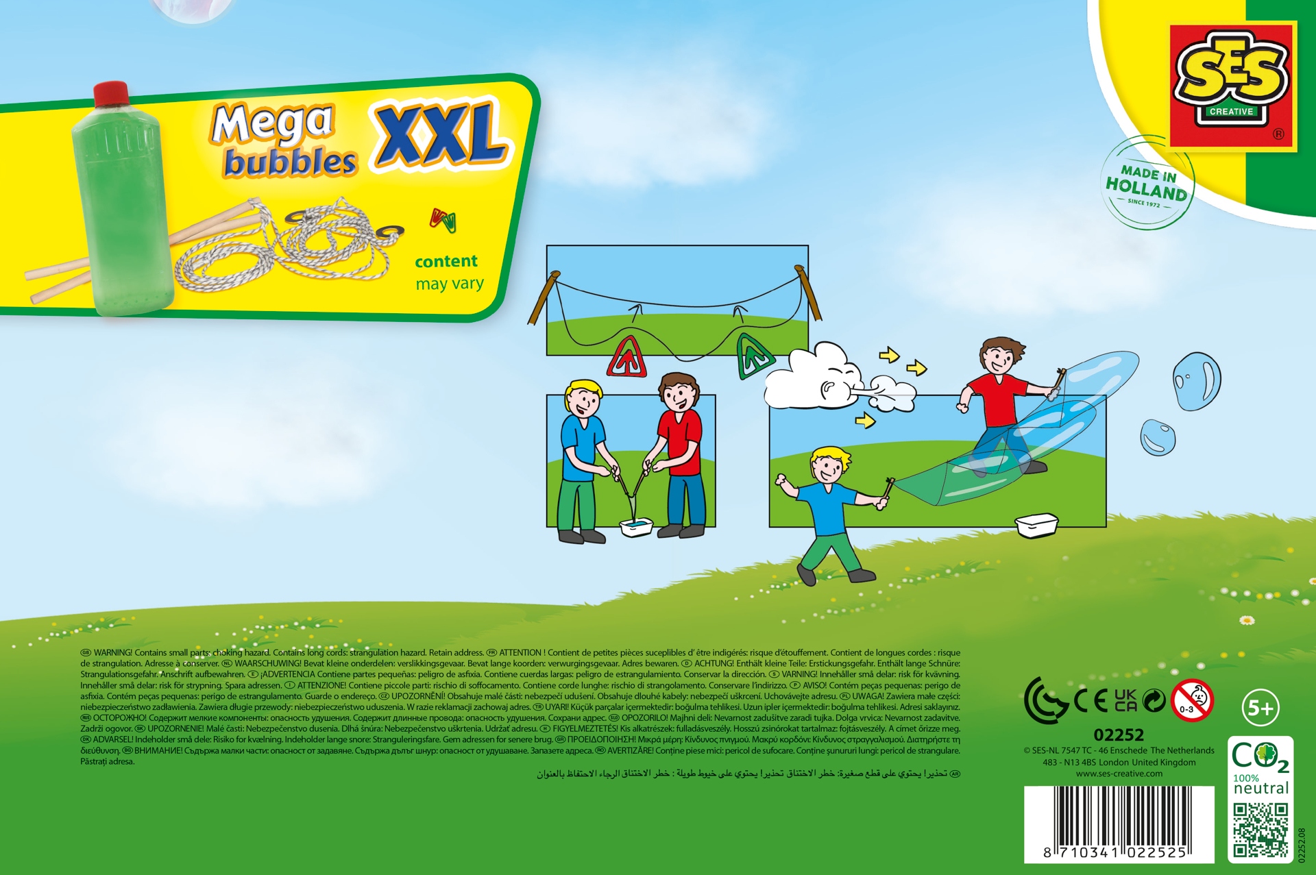 Это возможно с этим уникальным набором от SES Creative! Здесь вы найдете специальный инструмент для создания пузырей, миску для жидкости, 2 скрепки и бутылочку объемом 750 мл с уникальным раствором.