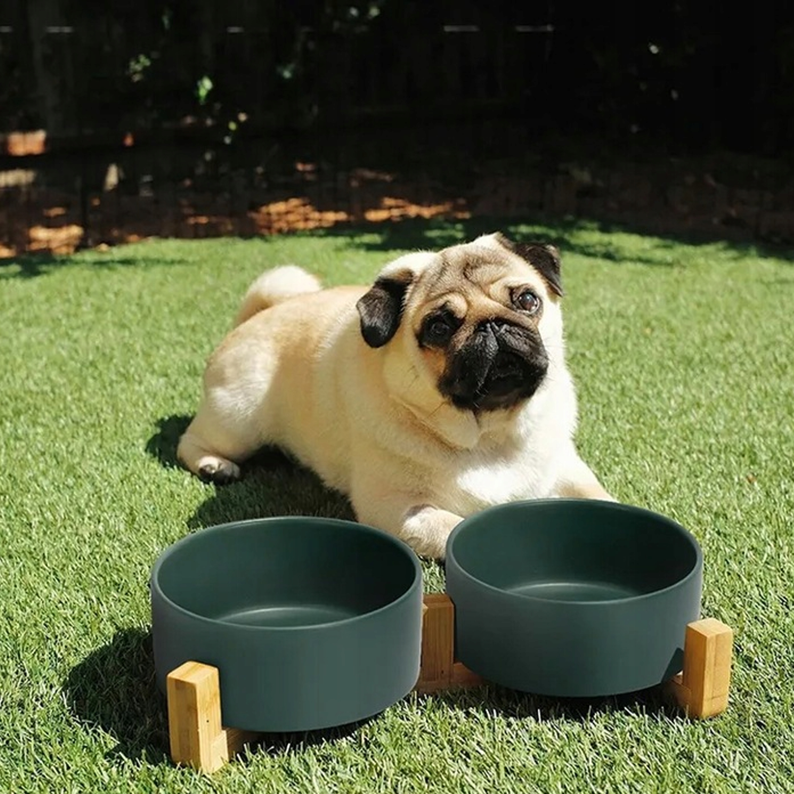 ✔️ Деревянная подставка предотвращает скольжение мисок.