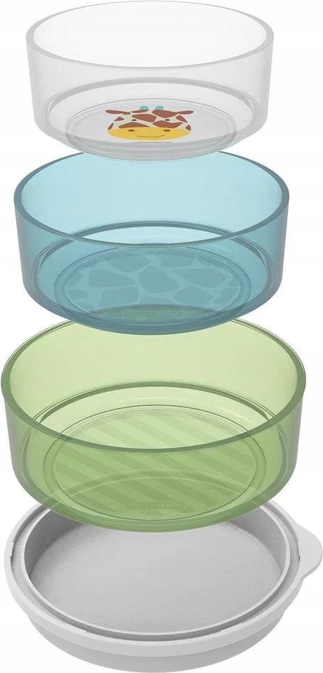 Набор мисок от Skip Hop, который наверняка пригодится в детской лавке. Милое животное и нежные цвета побудят вашего малыша попробовать блюдо. Они имеют нескользящее дно, которое не позволяет им скользить по поверхности. Набор состоит из 3 чашек и чехла, подходящего для самой большой из них. Это позволит вам взять с собой перекус на прогулку или второй завтрак в школу.