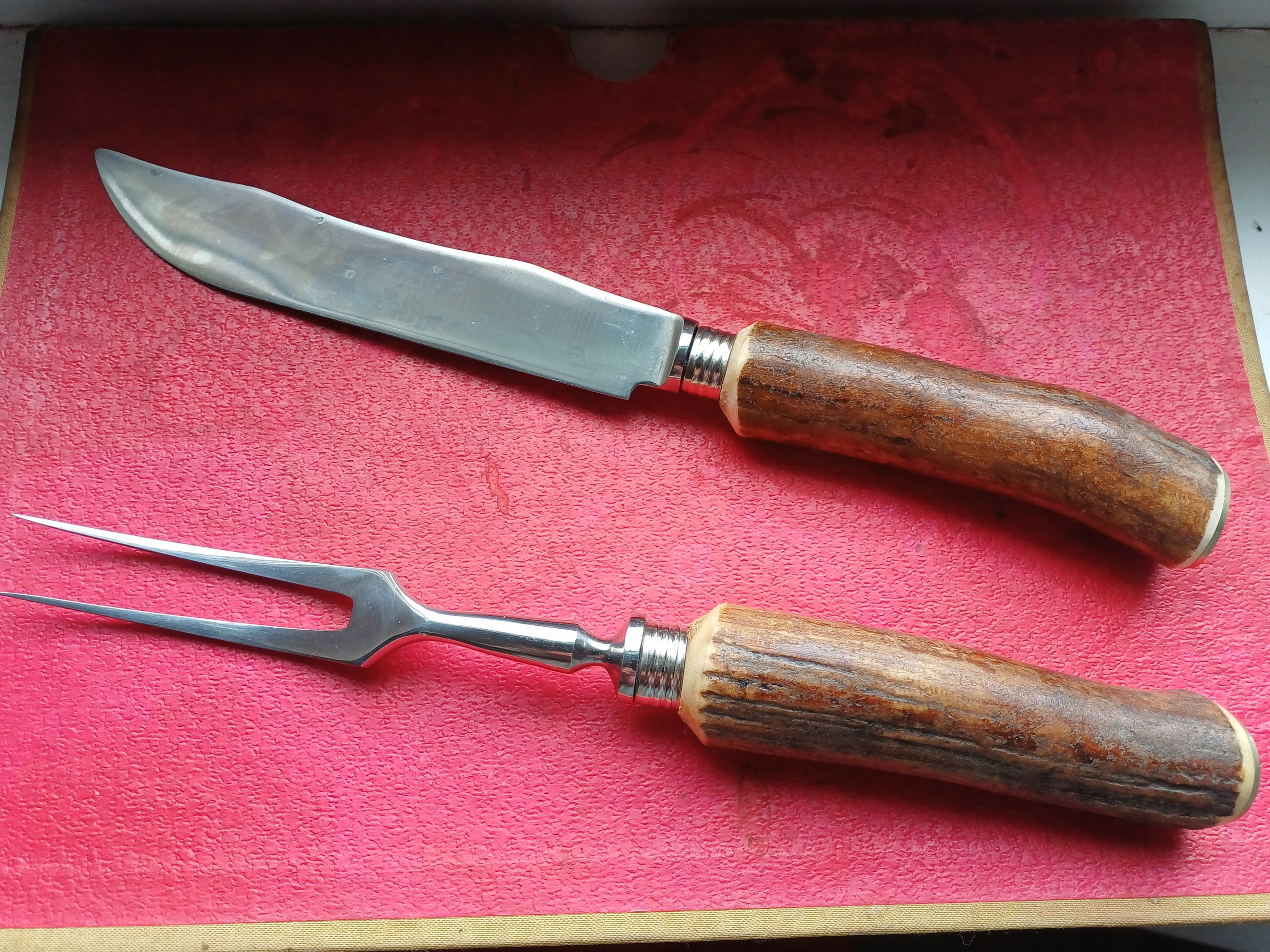 НАБОР ОХОТНИЧЬИХ НОЖЕЙ И ВИЛОК С рогами 27 СМ
