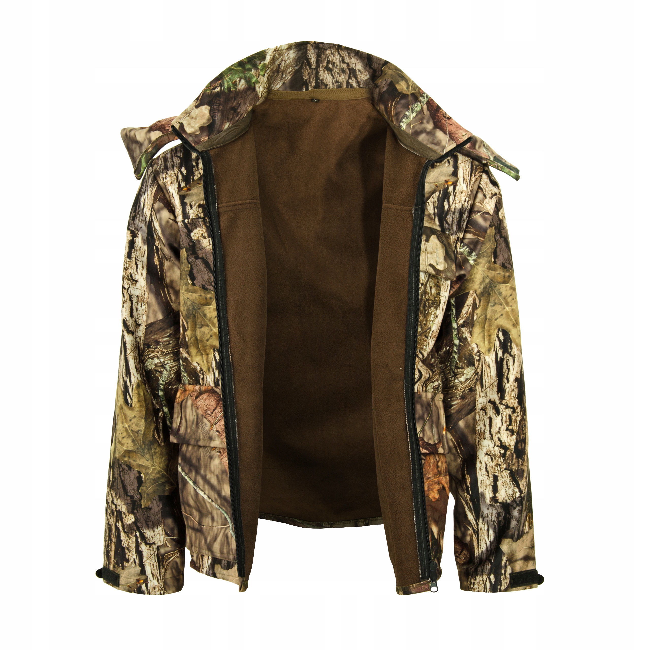 Мягкий комплект softshell в настоящем охотничьем лесном камуфляже для охотников, желающих остаться незамеченными в лесу.