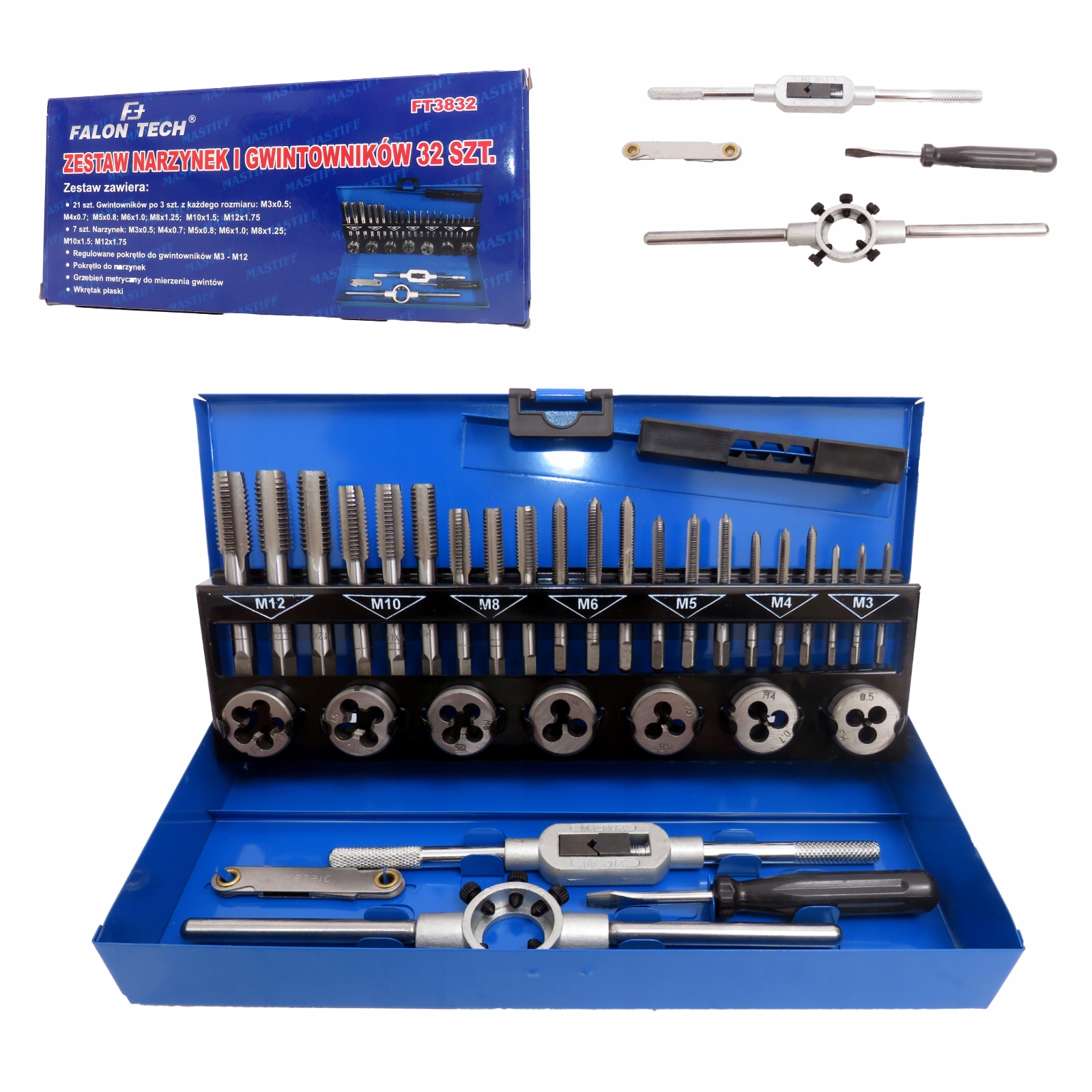Просматривая «НАБОР МЕТНИКОВ И МАТРИЦ М3-М12 32 ЭЛЕМЕНТА», вы можете быть уверены, что данный товар из каталога «Метчики и плашки» будет доставлен из Польши и проверен на целостность. В цене товара, указанной на сайте, учтена доставка из Польши. Внимание!!! Товары для Евросоюза, согласно законодательству стран Евросоюза, могут отличаться упаковкой или наполнением.
