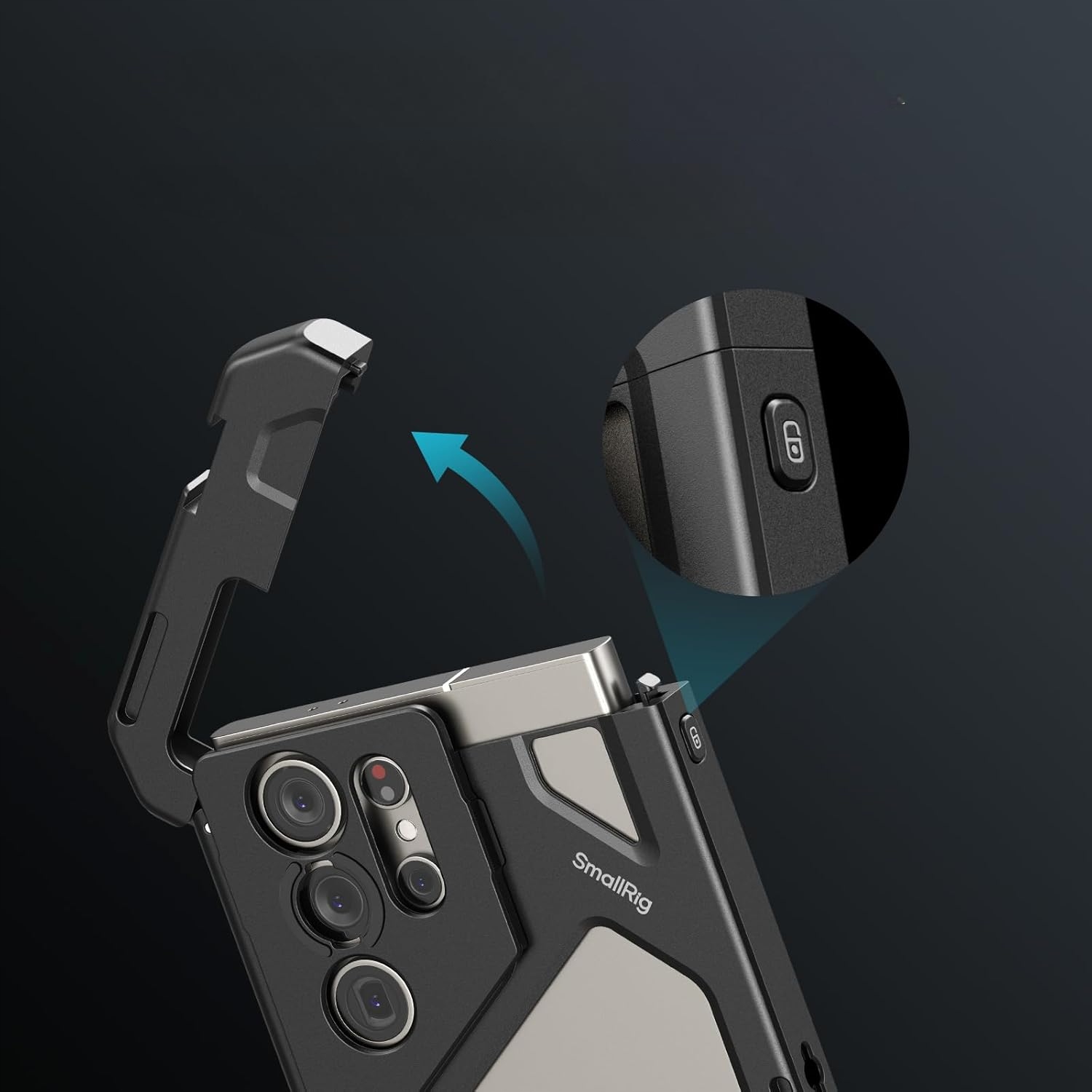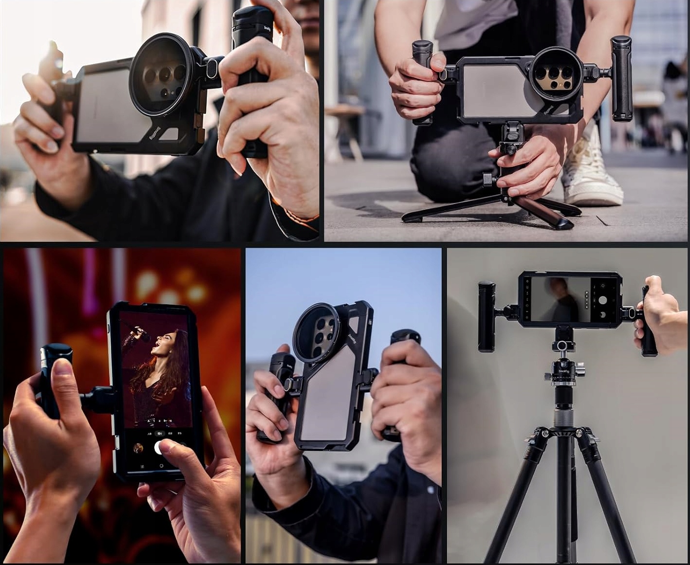 , разработанный для Samsung Galaxy S24 Ultra, набор мобильных видео -клетки от Smallrig идеально подходит для Vloging, концертов записи, коротких фильмов, рабочих стендов, а не только не. Благодаря прикрепленной задней пластине T-Mount, задней пластине с 5-мм резьбой и 67 мм магнитной задней пластины, пользователи смогут начать запись с линзом T-Mount или 17 мм объективов и использовать 67-мм фильтры. Восемь резьбовых отверстий 1/4 "-20, два насадки" холодных ноги ", четыре быстрых соединения и отверстие для ремня позволяют устанавливать аксессуары, включая боковые ручки, проданные отдельно, штатив, микрофон, светодиодные лампы, ручной ремень и другие. Рама также безопасно закрыт, поэтому устройство не выпадает во время использования.