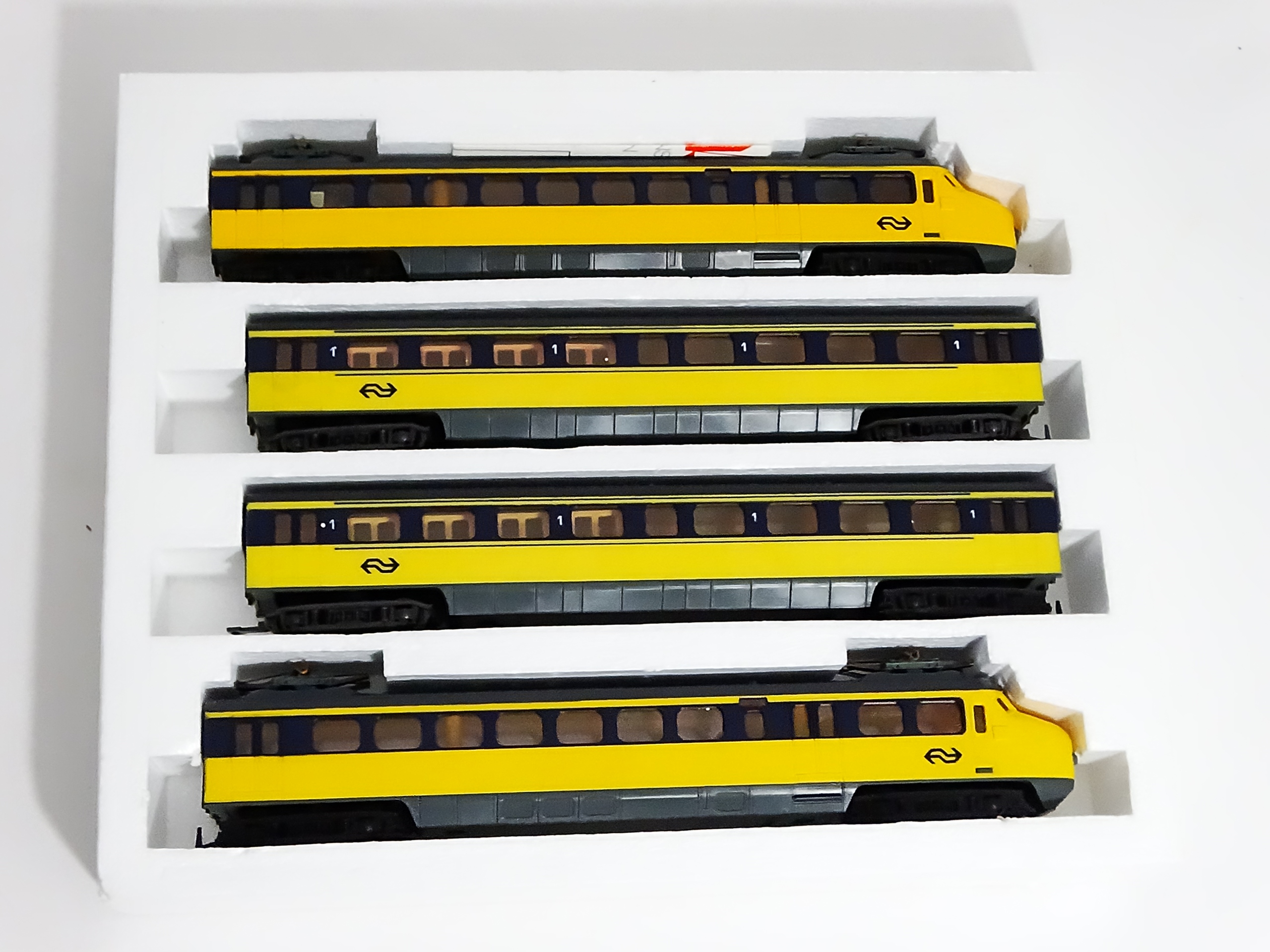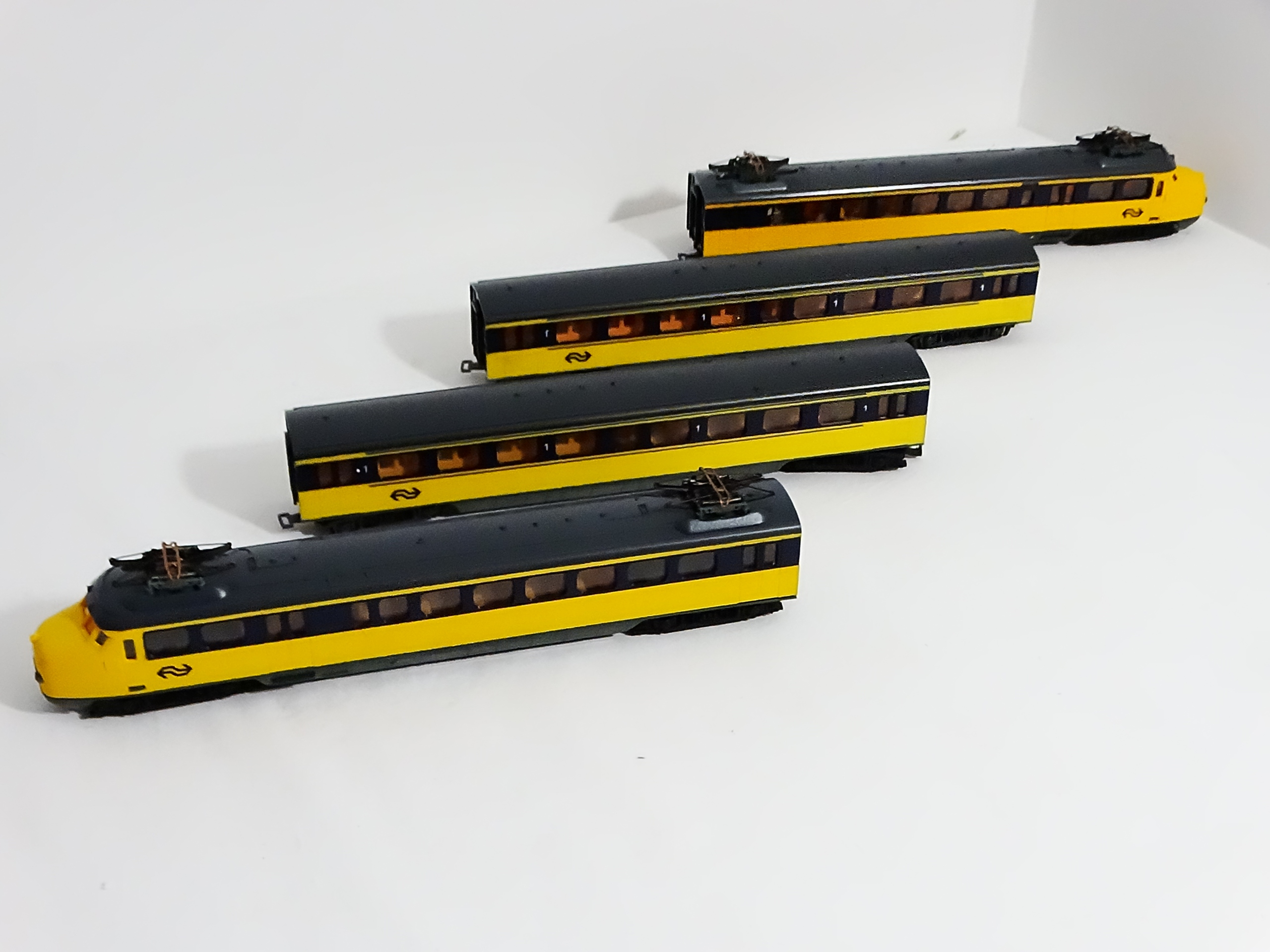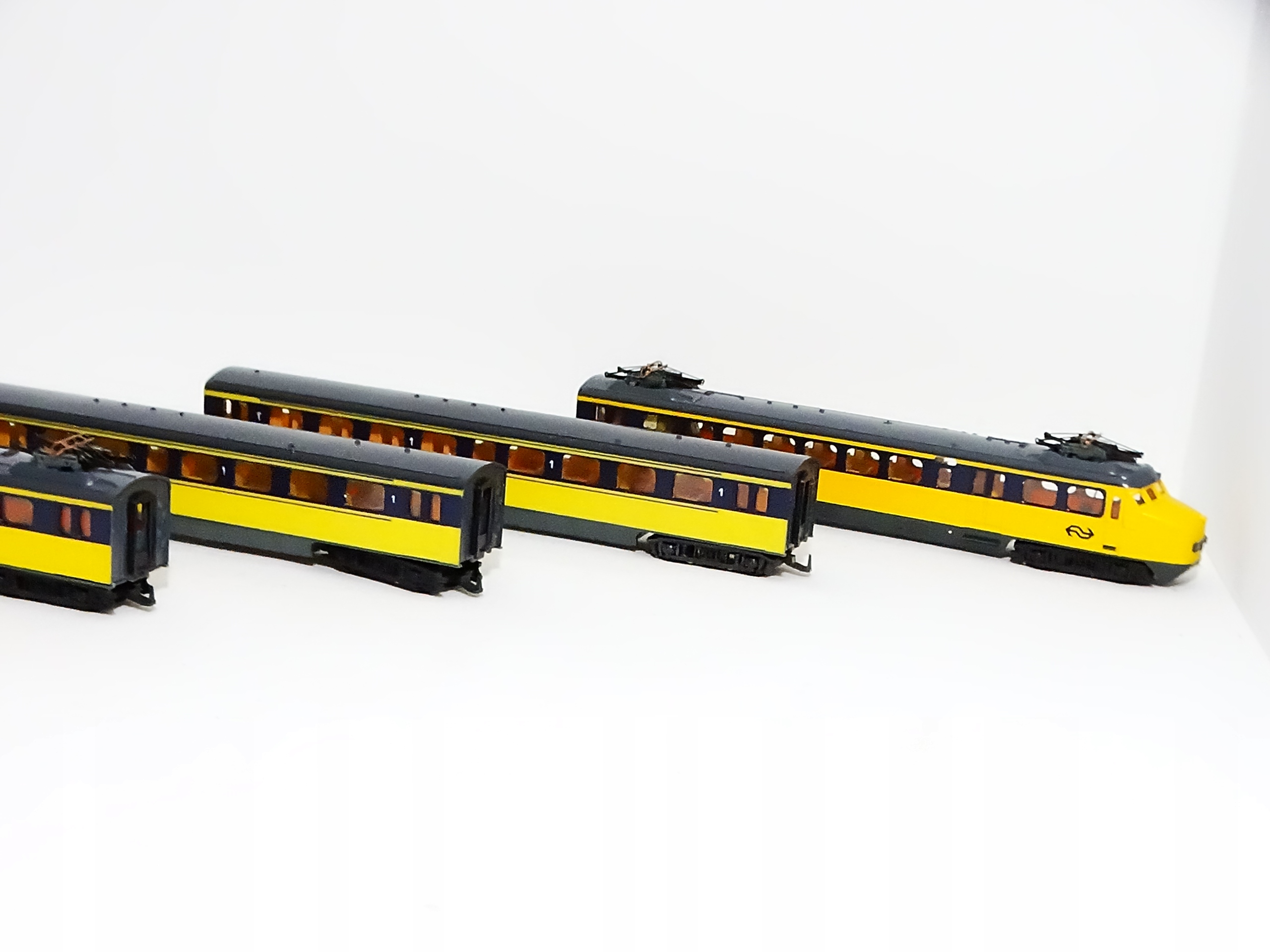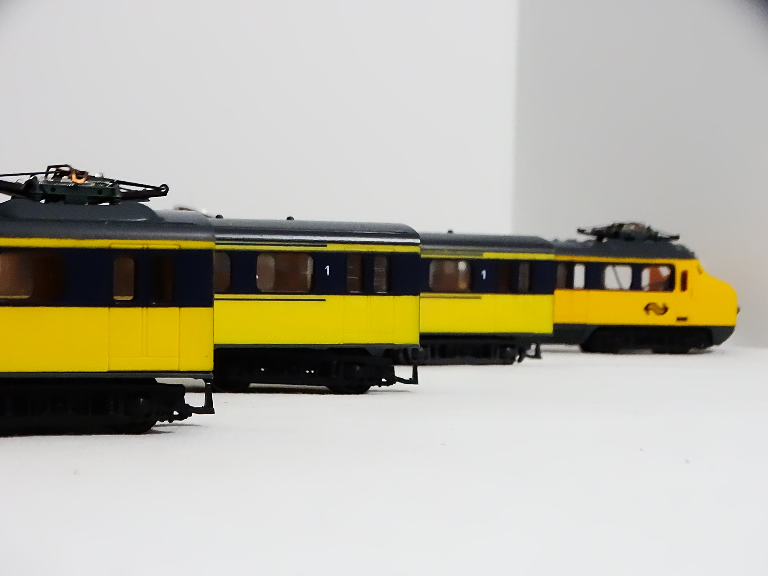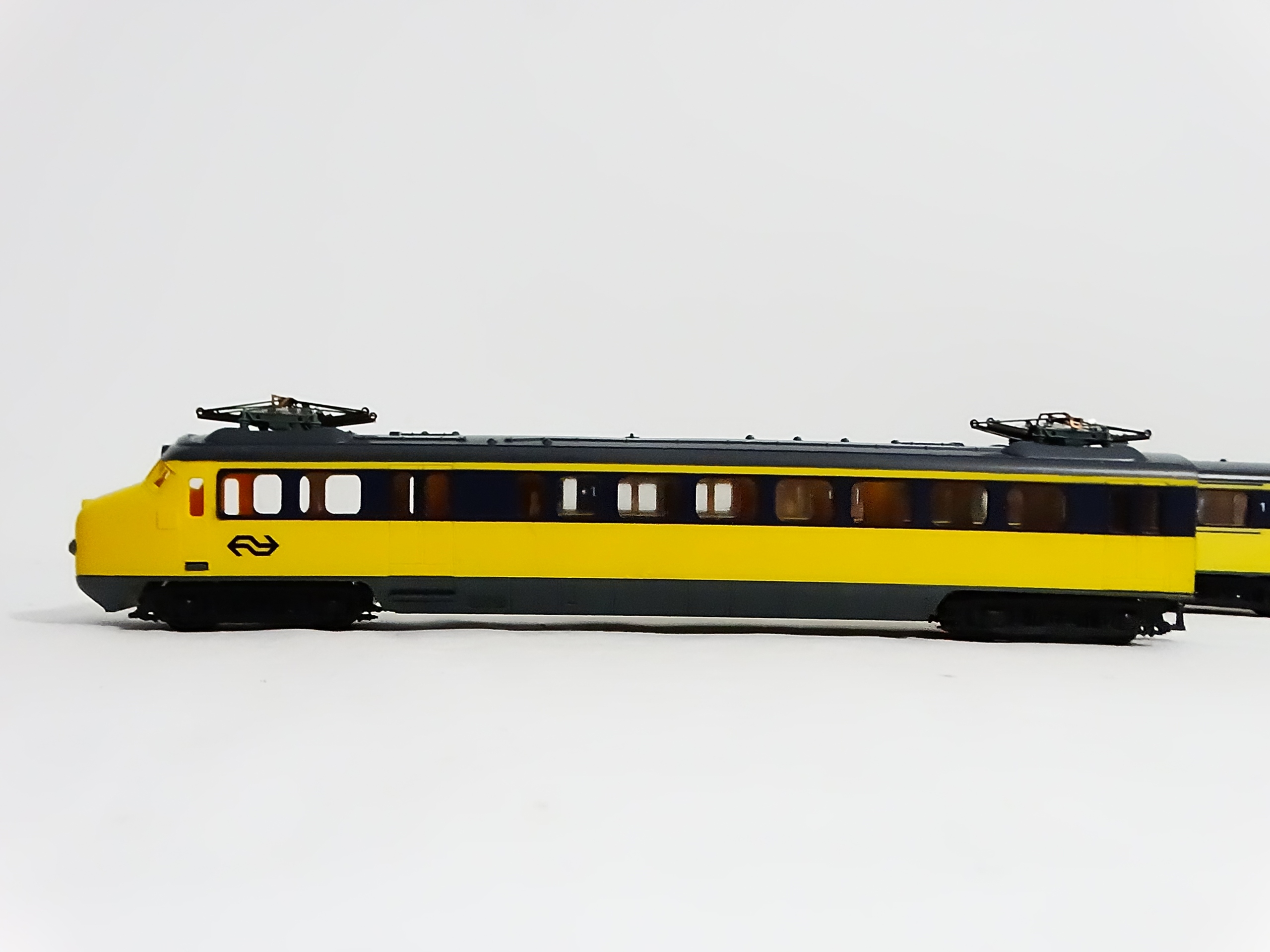 - Модель NS: изображен бывший в употреблении электропоезд. (ЭВС). на голландских железных дорогах с 1980-х годов - чаще всего тип ICM Koploper или Mat '64.