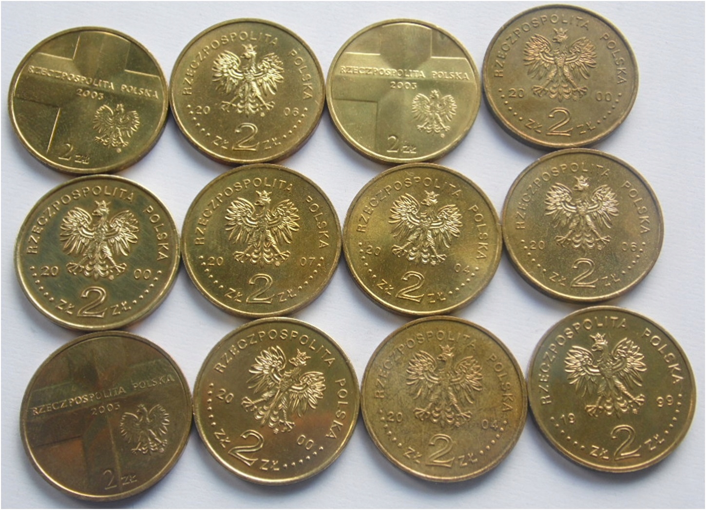 Набор монет PLN 2 года 1999 - 2007 - 12 штук с фото ** Z08 **