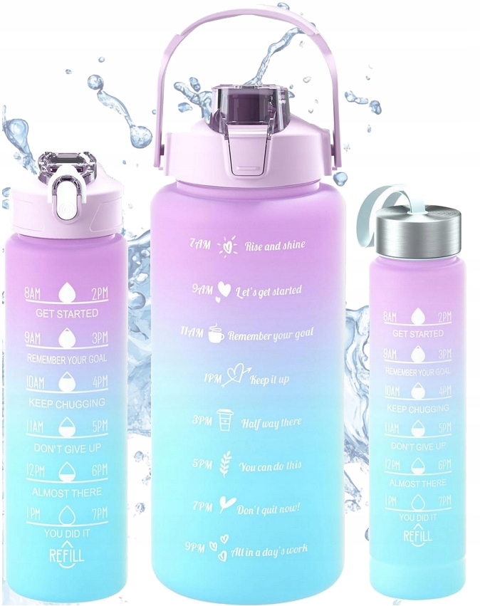 ✨ Набор включает в себя три световых и прочных бутылок с различными возможностями (2000 мл, 900 мл и 300 мл), изготовленные из высококачественного пластика - идеально подходит для повседневного использования. в тренажерном зале, во время работы, поездки , на работе или в школе.