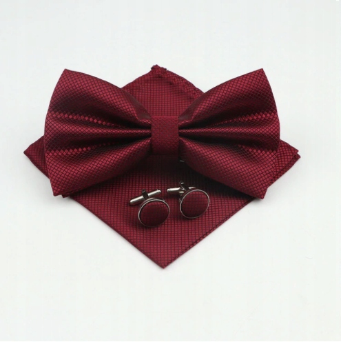 Комплект: галстук-бабочка + нагрудный платок + бордовые запонки