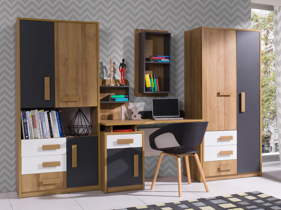 Система состоит из: шкафы, полки, комоды, полки, столы, кровати