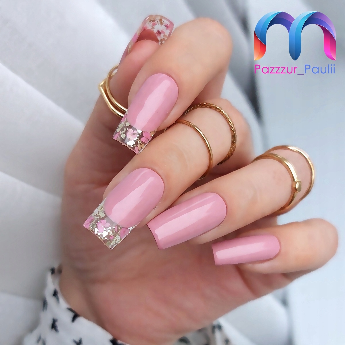 ⭐ ГЛЯНЦЕВЫЙ РОЗОВЫЙ - Оттенок розового с высокой степенью покрытия, выбеленный, обогащенный серебряными частицами. Предложение мечты для поклонников вечной элегантности. Стилизации, выполненные с помощью этого геля, будут нежными, но их трудно не заметить. Они будут идеальны на каждый день, а также для более масштабных мероприятий, когда вам нужно произвести большое впечатление.