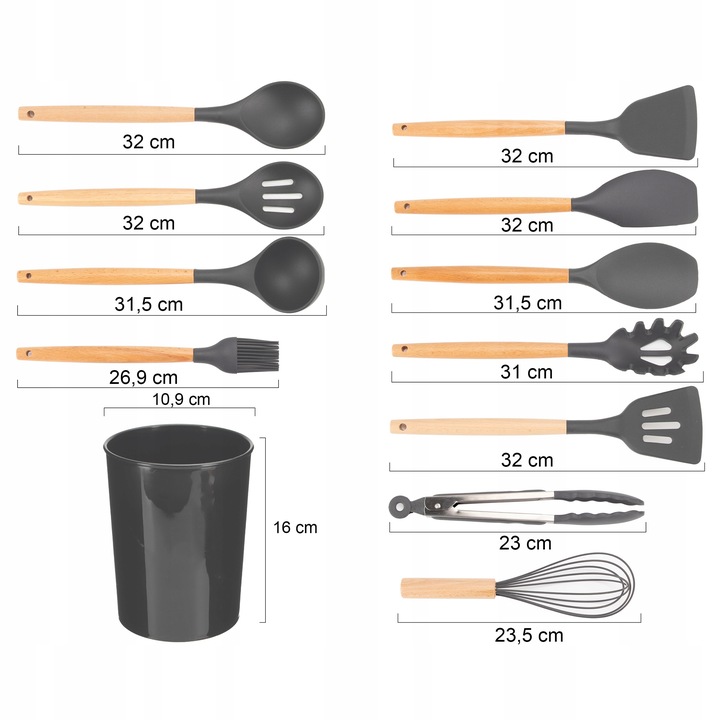 Откройте для себя набор из 12 элегантных и долговечных кухонных посуды , изготовленные из силикона высочайшего качества. Идеально подходит для повседневного использования - от нежного смешивания соусов, до превращения блинов, до подачи пасты. Благодаря сопротивлению высоким температурам и неплошной поверхности, ваши горшки и сковороды останутся новыми.