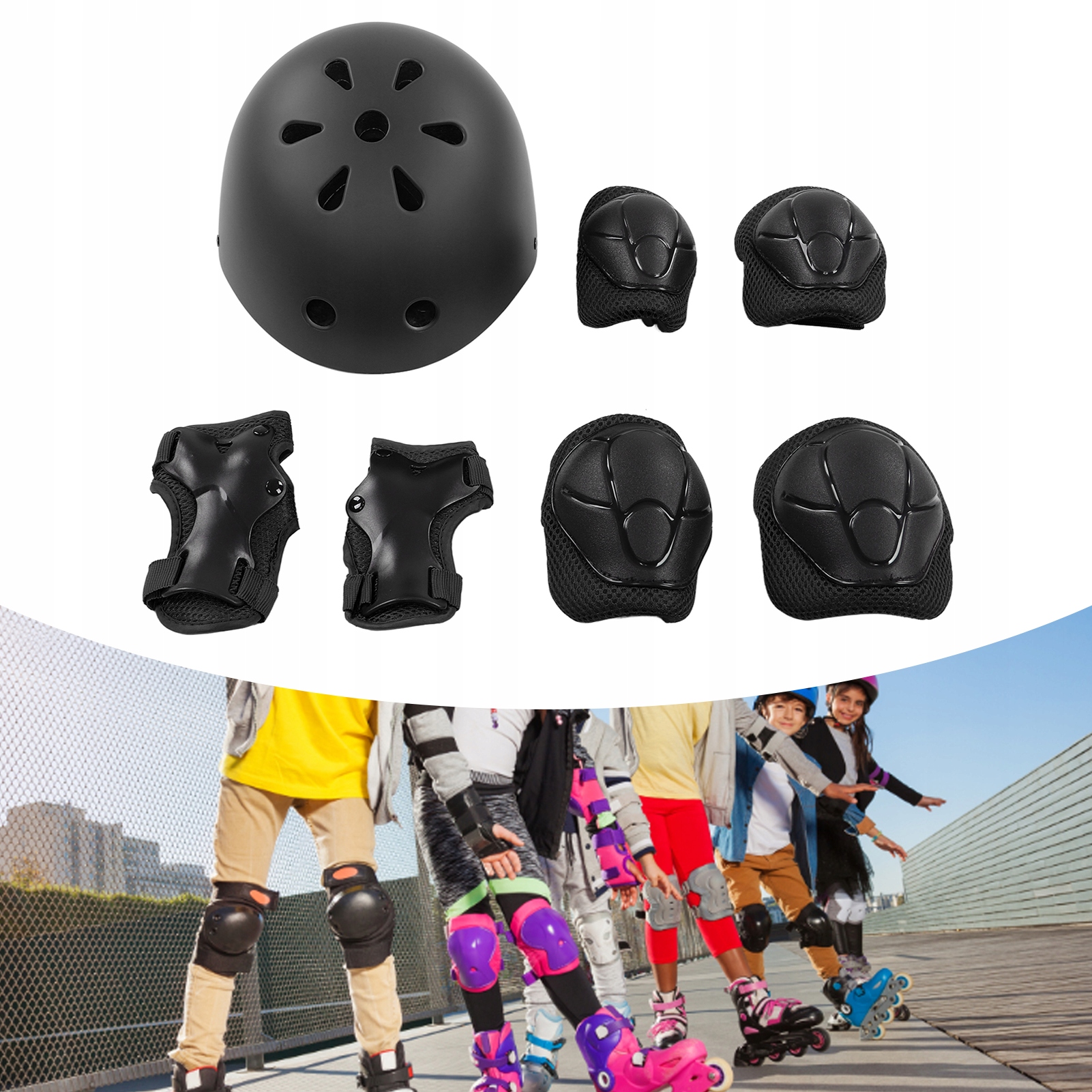 7 шт./компл. детский защитный шлем, комплект наколенников и налокотников, дышащий комплект защитного снаряжения для катания на коньках, черный