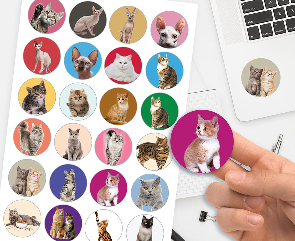 В комплект входит лист формата А4, содержащий до 24 наклеек диаметром 40 мм.