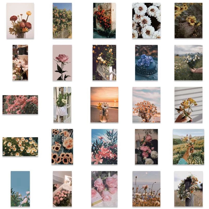 НАБОР НАКЛЕЙКОВ МИКС ЦВЕТЫ РЕТРО 50 шт.