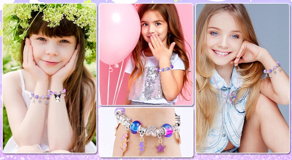 подвески с вашими любимыми героями, цветовой магией, красочными и серебряными подвесками или исключительными чарами и дополнительными аксессуарами позволят небольшому дизайнеру для небольшого дизайнера для представления уникальных ювелирных изделий. Набор дает вам бесконечные возможности создания модных украшений, которые можно хранить в красивой фиолетовой коробке.
