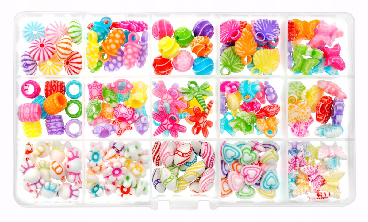 В набор входят бусины и декоративные элементы, упакованные в 3 практичных органайзера. В комплект также входят шнурки, подвески и ластик для украшений, из которого можно сделать привлекательные браслеты. Создать интересные украшения можно в несколько этапов - достаточно нанизать бусины, связать два конца и украсить подвесками - браслет готов!!!
