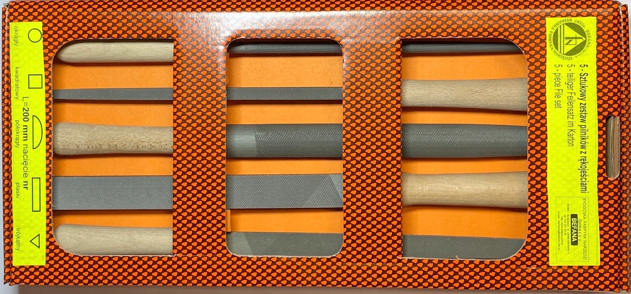 Набор слесарных напильников BEFANA KP 1205 состоит из 5 напильников длиной 200 мм.