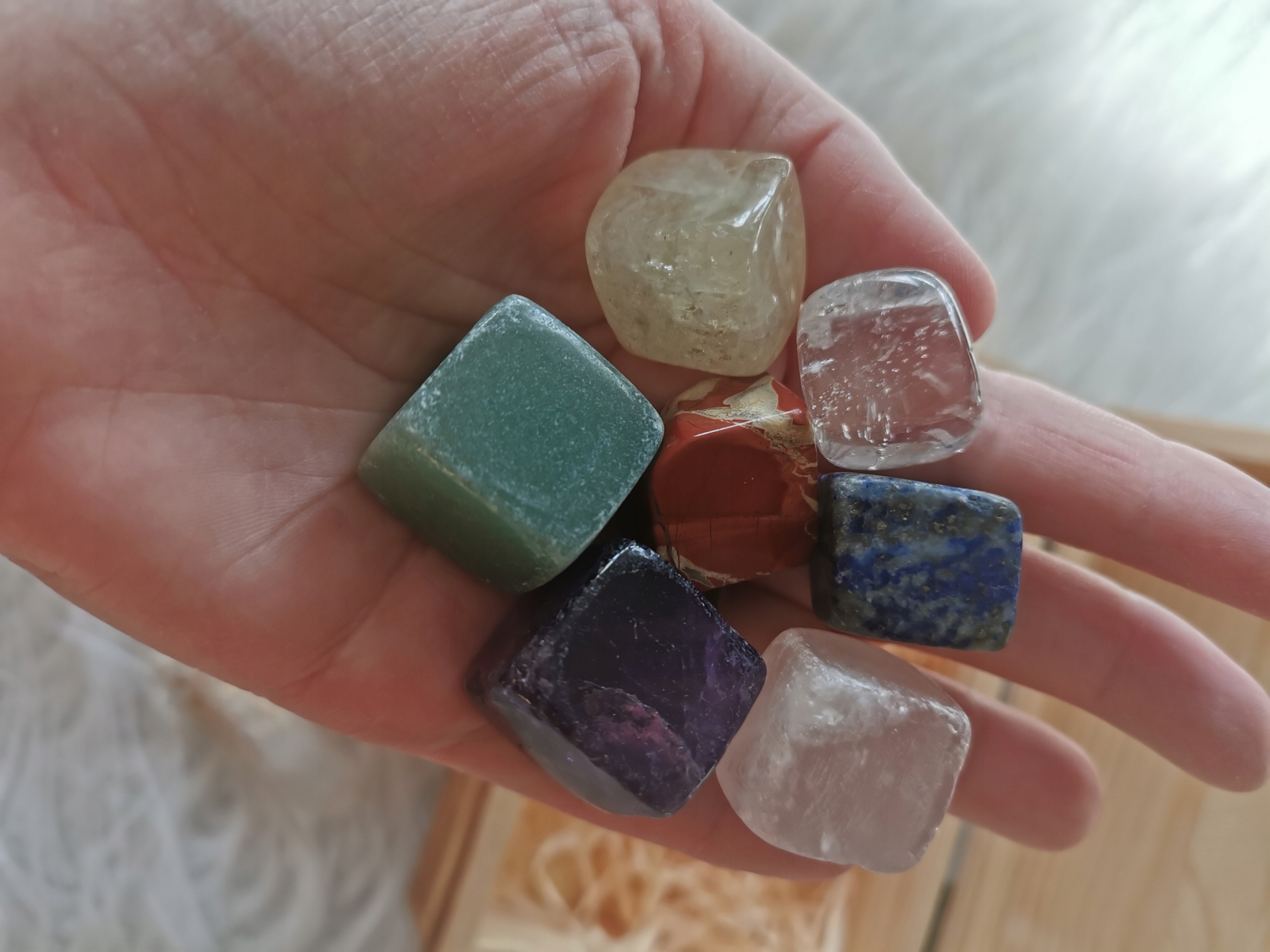 набір натуральних каменів для чакри маятника 11 шт. в дерев'яній коробці