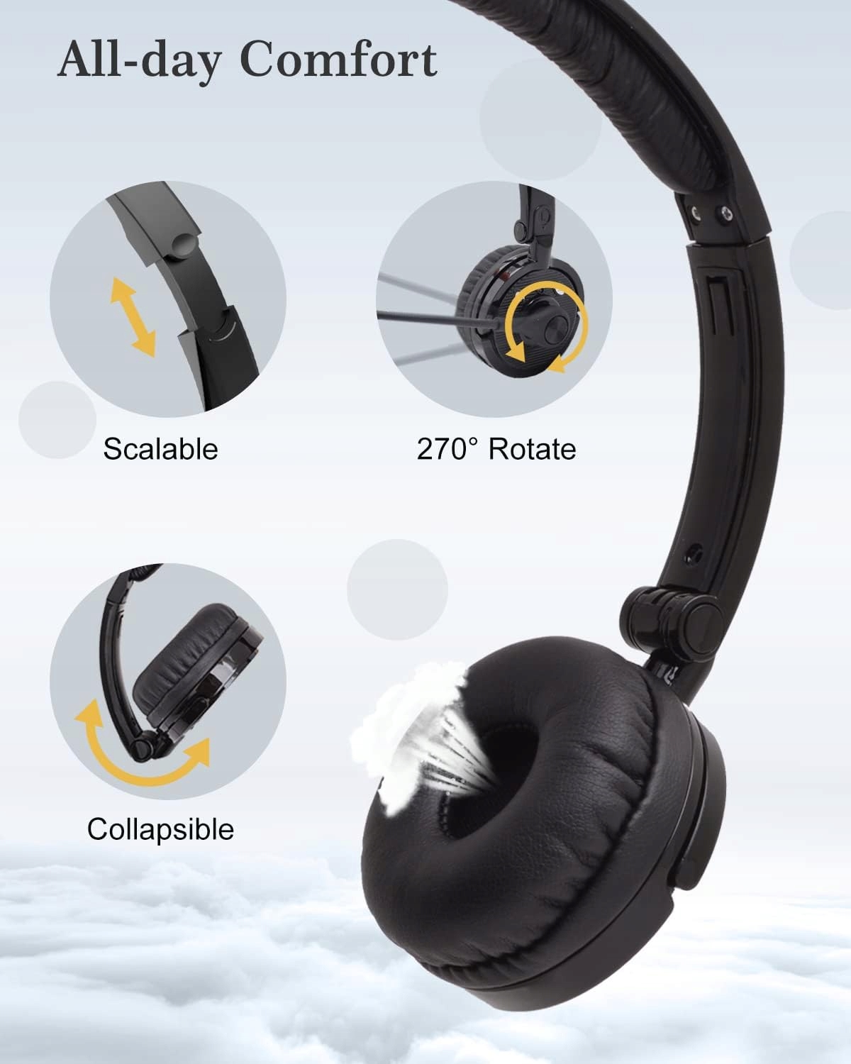 Наслаждайтесь чистым звуком и простотой использования: этот набор беспроводных наушников оснащен новейшей технологией Bluetooth, которая гарантирует быстрое и стабильное соединение, отличное качество звука в режиме без рук и отличные музыкальные впечатления. Используя многофункциональную кнопку, вы можете выбрать, принимать, отклонить, закончить и перенаправить подключения, а также настроить громкость, используя кнопки «+» и «-». Эргономическое ношение комфорта: высококачественные, мягкие ушные подушки с белками и регулируемая повязка на голову обеспечивают долгосрочное удовольствие от прослушивания. Super -Blue Design обеспечивает комфорт, позволяя вам сосредоточиться на разговоре. Идеально подходит для онлайн -классов, работы в офисе, колл -центре, играх и повседневного использования. Складной дизайн делает наушники идеально подходит для путешествий и при прослушивании музыки на ходу. Главный микрофон и другие функции: гибкая ручка микрофона улучшает передачу звука и обеспечивает кристально чистое качество голоса во время всех частных и деловых переговоров. Функция отключения быстро включается с помощью кнопок на наборе наушников. Вы можете одновременно соединить два устройства Bluetooth. Совместимость и длительное время автономной работы: наушники Bluetooth могут быть подключены к телефонам iOS/Android, ноутбукам, настольным компьютерам, интеллектуальными телевизорами и т. Д. Создан, чтобы идти в ногу со своим напряженным графиком!