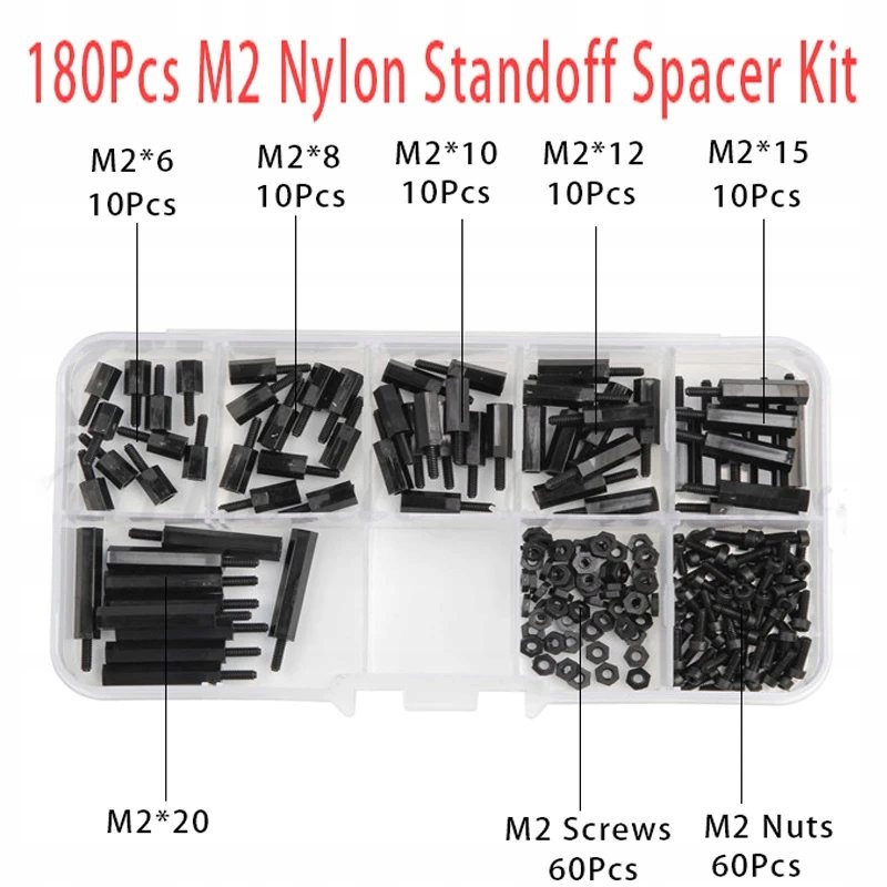 Zestaw nylonowych śrub nakrętek dystansów M2 180sz