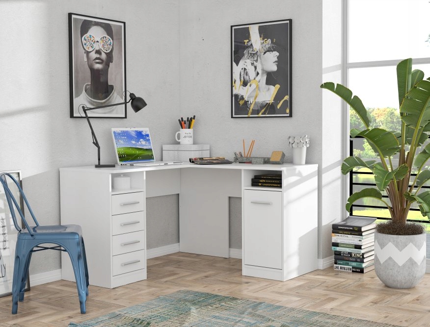 Элегантный угловой стол в современном стиле идеально подходит для домашнего офиса и молодежной комнаты, независимо от того, какую аранжировку он был организован. Тонкий белый декор освежает интерьер, придаст ему легкость и стиль.
